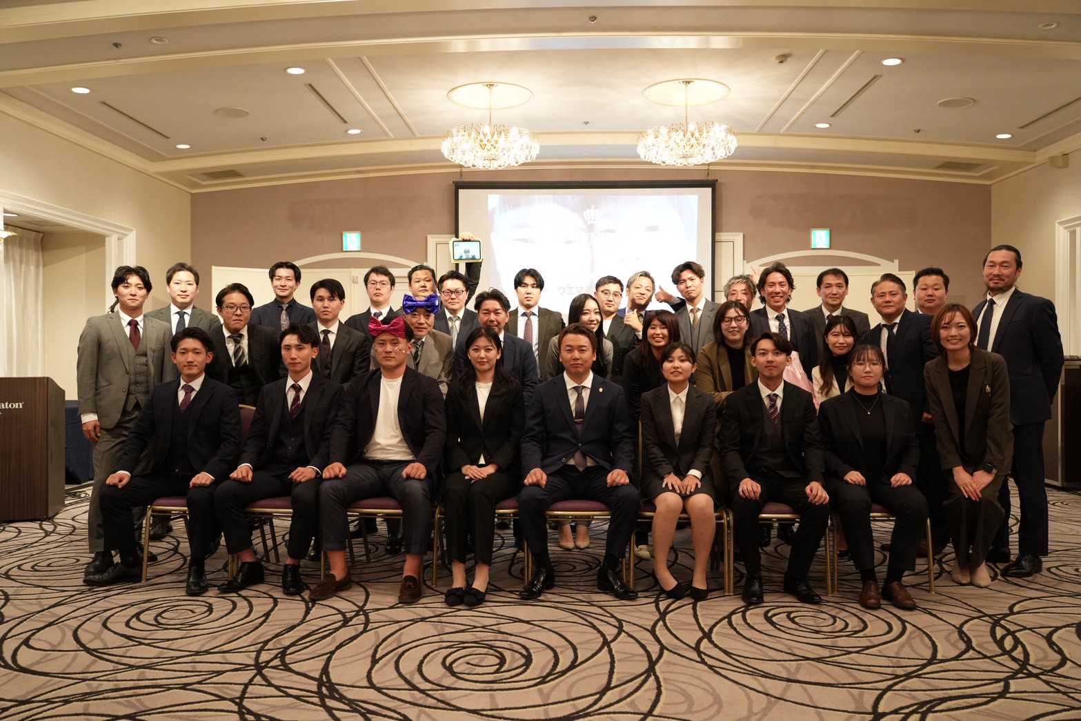 10月24日(金)にてウエマチ不動産株式会社内定式・下半期・年間業績表彰式を シェラトン都ホテル大阪様にて執り行いました。 26年度内定者数は、6名です♪ 来年からは今のメンバーに加え、飛躍の年になると思うと 凄くワクワクしております♪ また、今回の業績表彰式は部署ごとのリーダーを決める 「ウエマチ不動産プレゼンバトル2025」が開催されました! リーダー希望者は社員全員の前で熱い思いを語り、社員全員で投票してリーダーを決めるという 企画に初挑戦いたしました! 弊社では、新卒・ベテランに限らず条件は全社員に与えられます。 緊張しながらも一生懸命自分の思いを伝えたインターン生の熱いスピーチに 感動致しました! そして業績表彰式では、なんと今回受賞された人の1人に 北店の新人ルーキーの沢田くんが授賞されました!! ウエマチに入ってからの怒涛の成長に営業一同「負けてられない!」と火が付いたことでしょう(^^)/ また、初企画第二段は内定者によるレクリエーションを開催しました! 学校やバイトなど忙しい合間をぬって 一生懸命みんなが楽しめるイベントを考えてくれました♪ こちらはスペシャルゲストで弊社社員が一緒に盛り上げてくれました!! みんなの努力と協力のおかげで大大大成功でした!!! また1つウエマチ不動産の素敵な歴史に刻まれたひと時でした♪ 来年はどんなメンバーでどんな表彰式になるのか楽しみです♪ 最後はもちろん弊社おなじみのこのポーズで締め括りとさせていただきます♪
